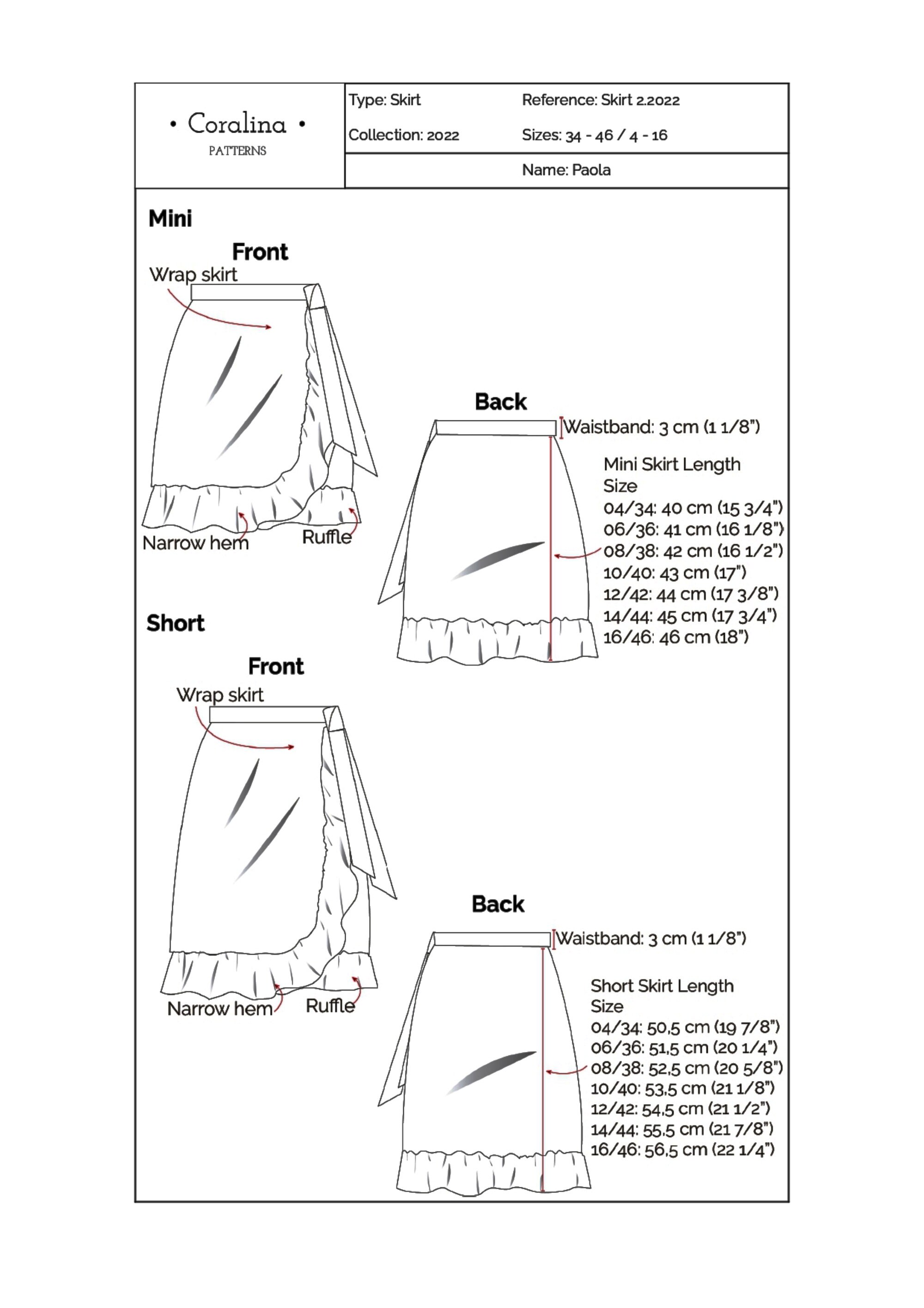 Wrap Tie Front Skirt Pdf Sewing Pattern Sizes 4 16 Eu Etsy